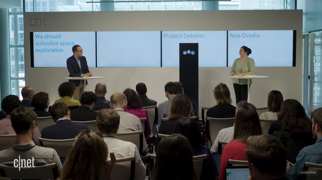 在2018年旧金山辩论赛上,IBM公司研发的人工智能Project Debater成功在“是否应该增加使用远程医疗”辩论中战胜了人类辩手。要知道与它对决的对手,是曾在2016年获得以色列国家辩论冠军的大四女生Noa Ovadia和以色列国家辩论协会主席Dan Zafrir。