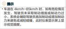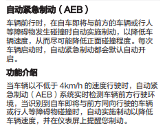 Plus版车型使用说明书中关于AEB的介绍