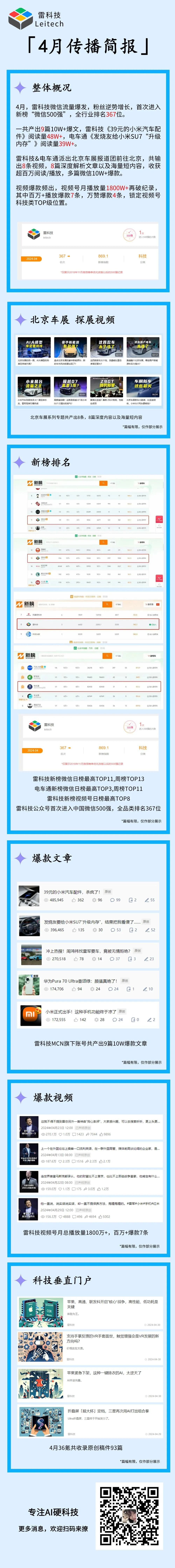 车展期间,雷科技旗下“关注电动车,更懂智能化”的新媒体电车通派出豪华报道团前往北京,进行了系统的一线专业深度报道,一共输出8条视频、8篇深度解析以及海量短内容,全网收获百万+阅读,斩获多篇微信10万+爆款(真实流量),在行业专业媒体引发较大关注。