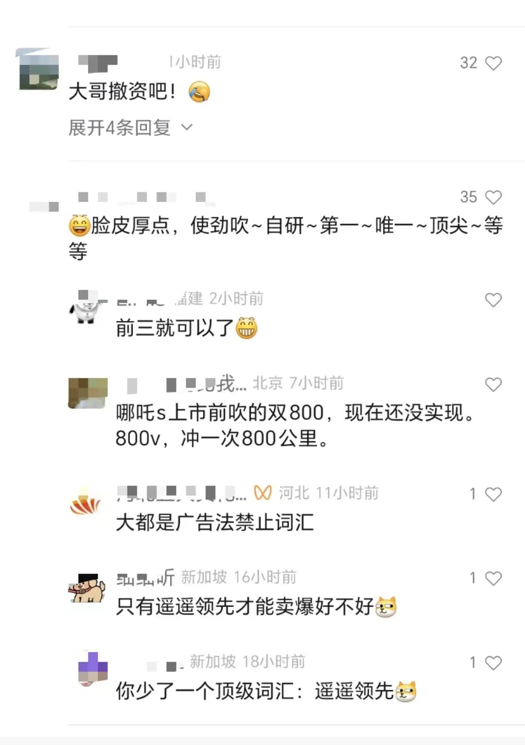 周鸿祎没有给“黑哪吒”划个范围、下个定义,但这样给网友戴黑帽子,估计会吓跑很多想给哪吒汽车提意见的人。因此评论区响应的人并不多,有些网友甚至劝周鸿祎撤资。
